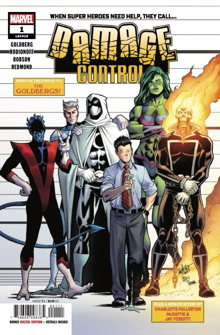 ADAM F. GOLDBERG (TV's The Goldbergs) and HANS RODIONOFF team up with WILL ROBSON to take you into the secret labyrinth of Damage Control, where it's totally common to run into familiar faces like Moon Knight! Nightcrawler! She-Hulk! And more!